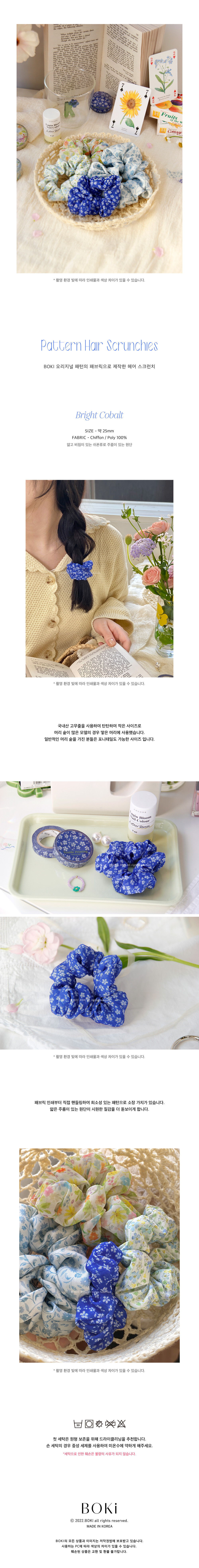 BOKI 오리지널 패턴을 프린팅한 원단으로 제작한 헤어 스크런치