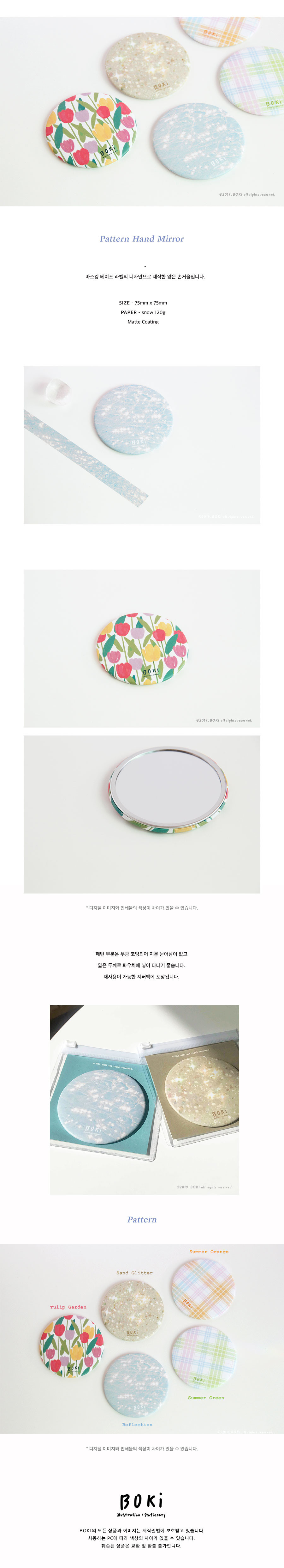 직접 디자인한 패턴의 얇은 손거울입니다.
